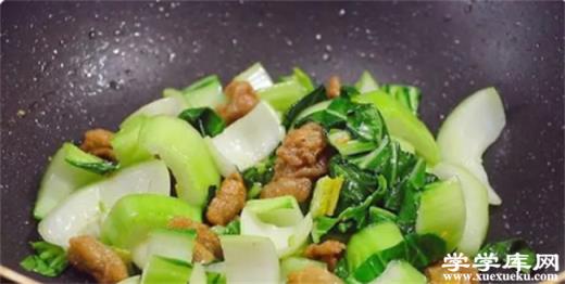 將青菜切段并清洗干凈,鍋中加入豬油后放入青菜進行翻炒,再加入豬油渣一起炒熟,最后加入適量的鹽進行調味。